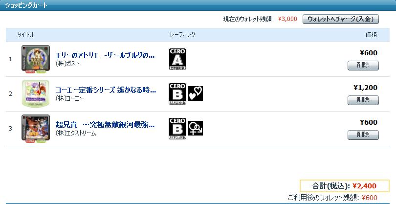 イラッと来たのでゲームをまとめてDL購入。3本買っても2400円って素敵。
